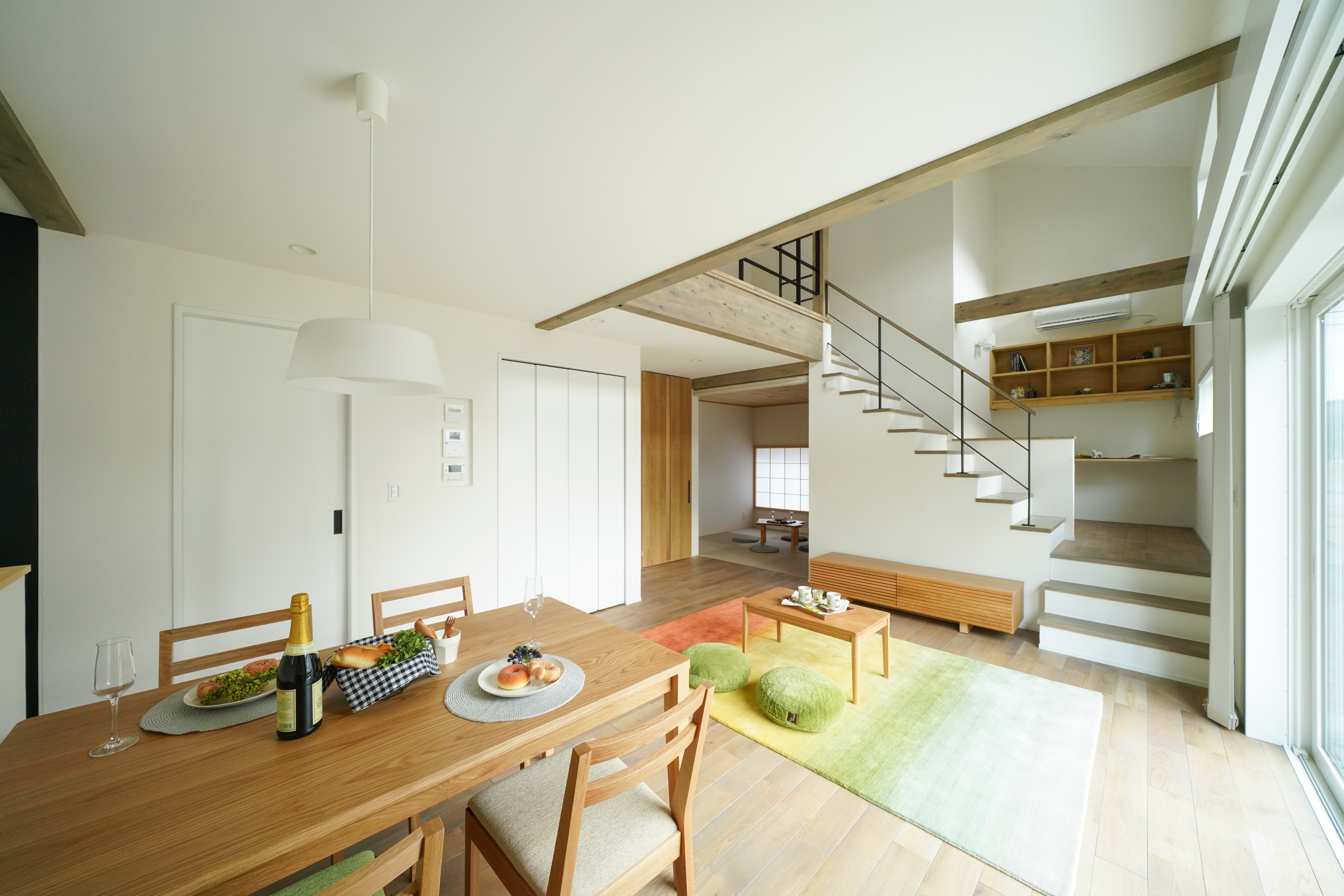 アイアン手すりやタイル、天井梁、タイルデッキなど、非日常を感じられる要素を詰め込みました。