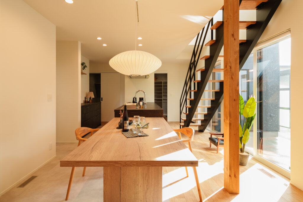 中庭を囲む掃き出し窓から程よい陽光が家族を優しく包む