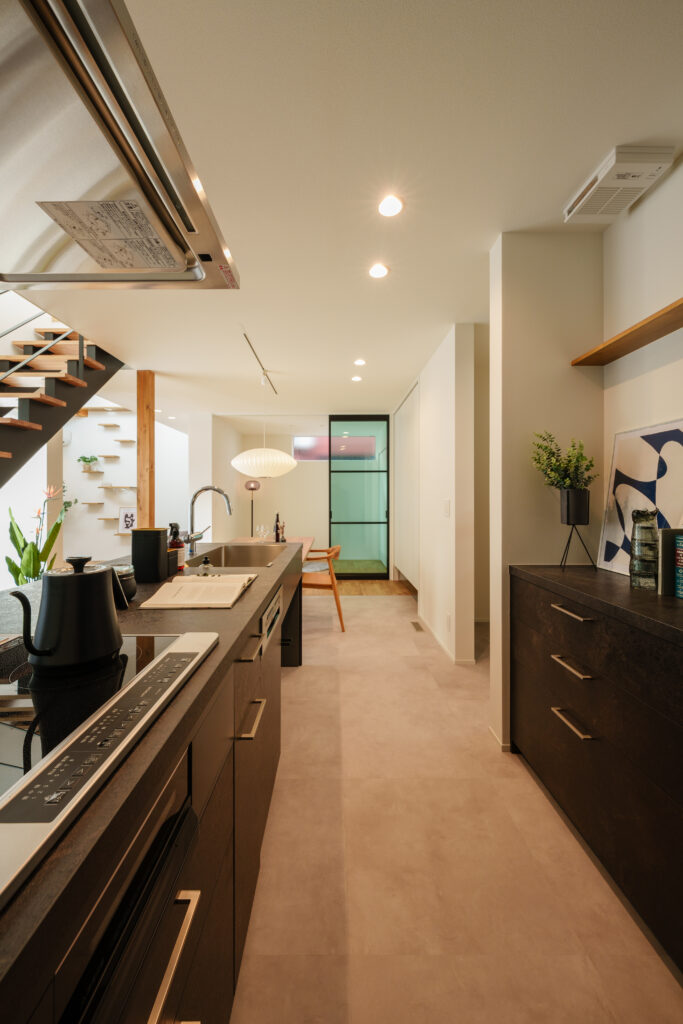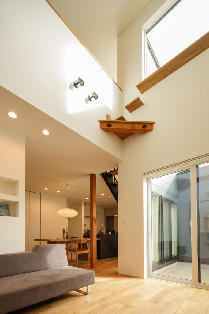 中庭を囲む掃き出し窓から程よい陽光が家族を優しく包む