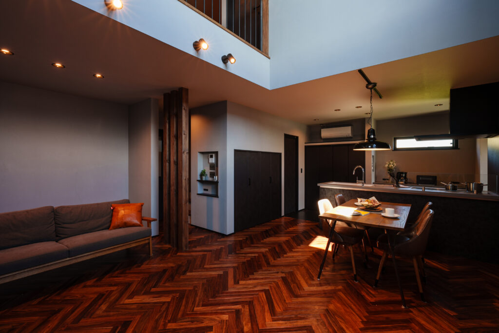 ヘリンボーン張りの床が魅せる、シックで上質な暮らし