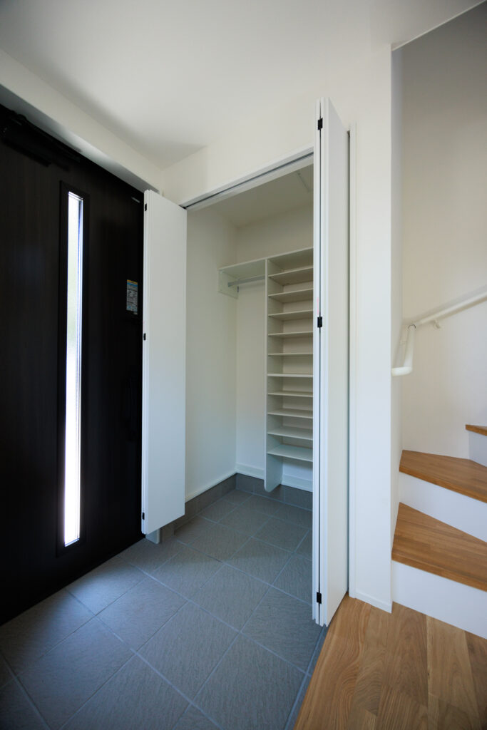 急な来客時もすっきり整う、扉付きのシューズクローク
