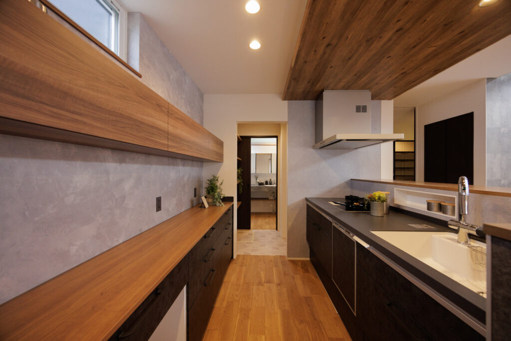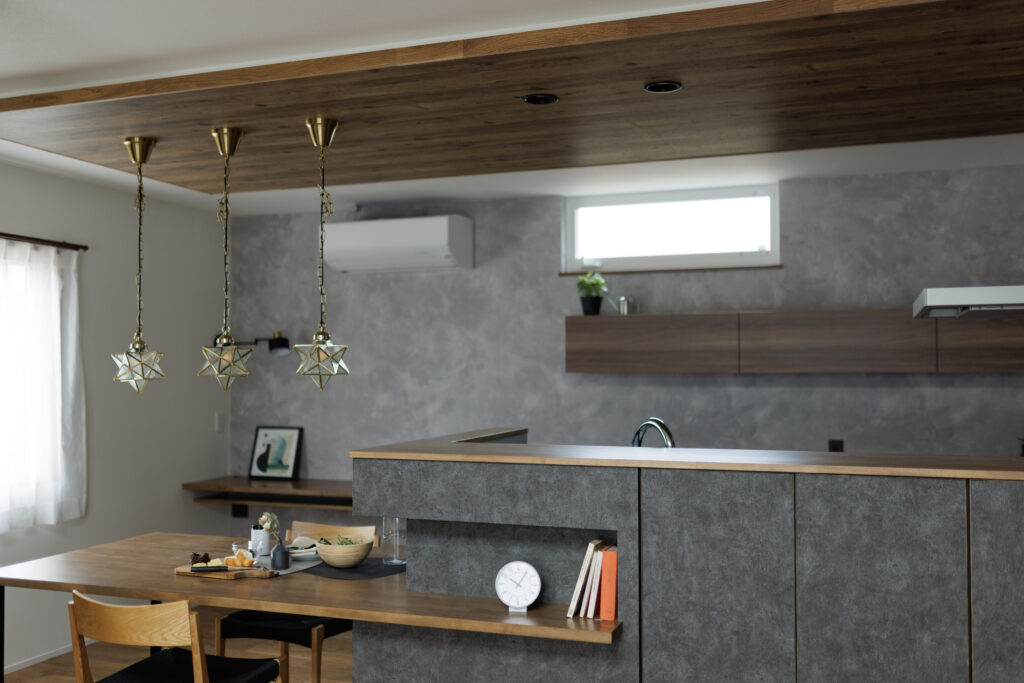 打ち合わせが始まった当初から外観は軒ゼロ、内観はダークグレー・白・木目を入れると決めていたご夫婦。