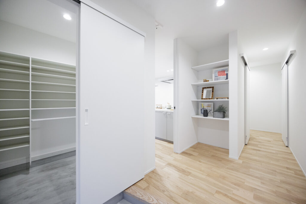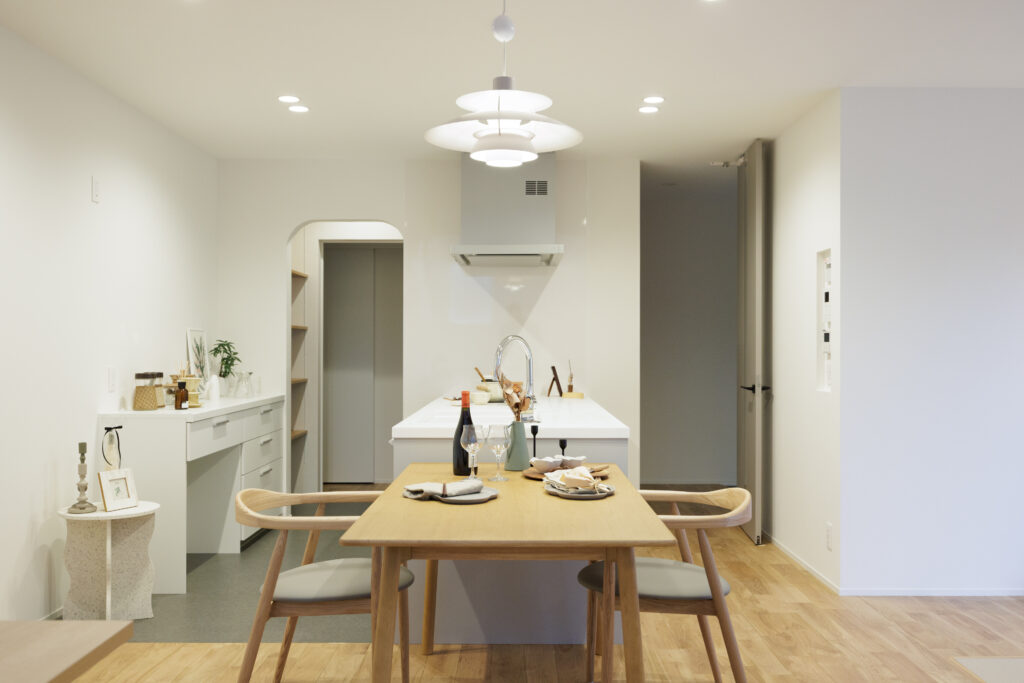 回遊動線や水回り一直線といった家事ラク動線も兼ね備えている。