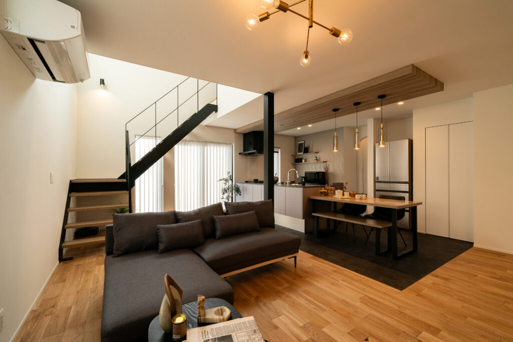 外壁には塗り壁×レッドシダー、内装にはアイアン×無垢などナチュラルな空間の中にアクセントがちりばめられたデザイン性も高い住宅になっている。